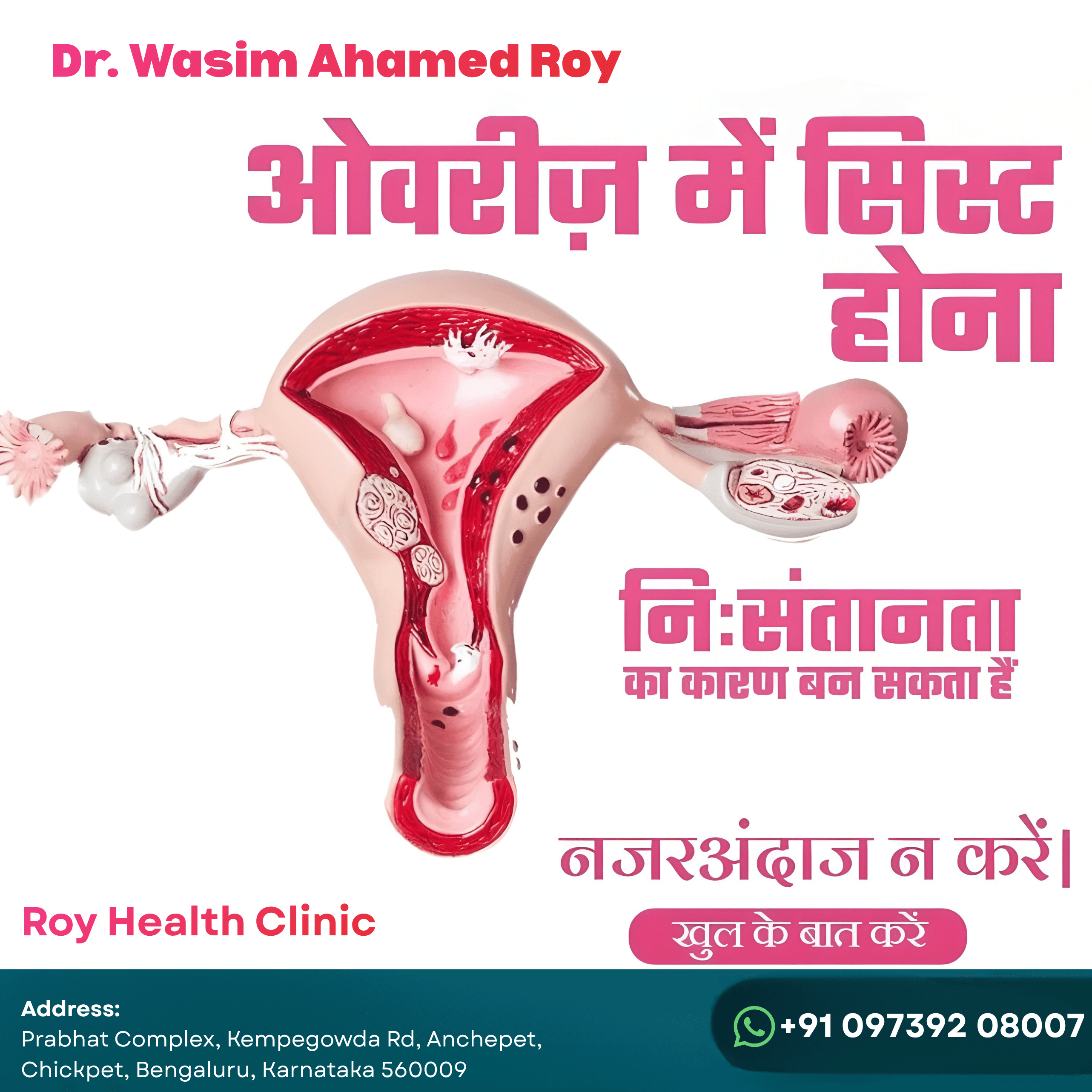 Roy Health Clinic offers expert diagnosis and treatment for ovarian cysts, PCOD, infertility issues, and women’s reproductive health.